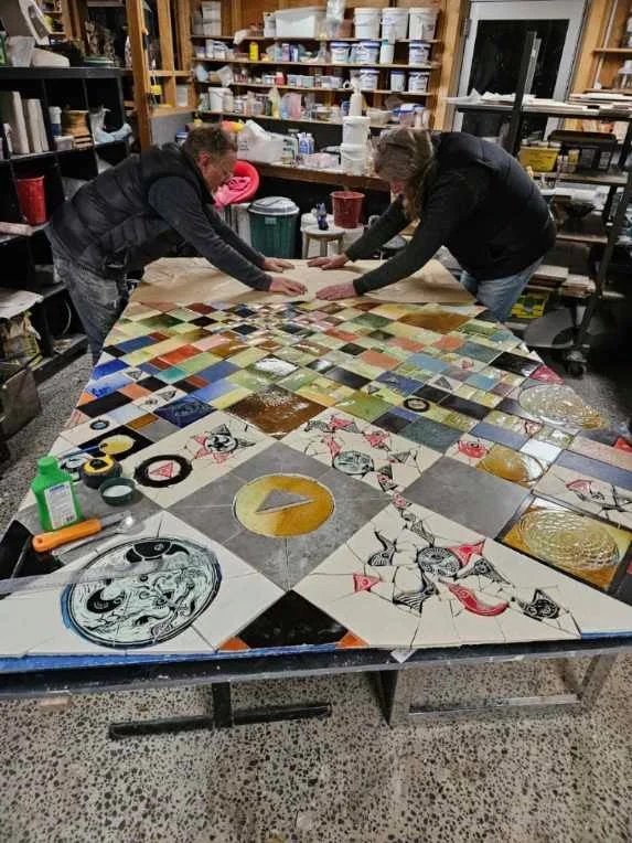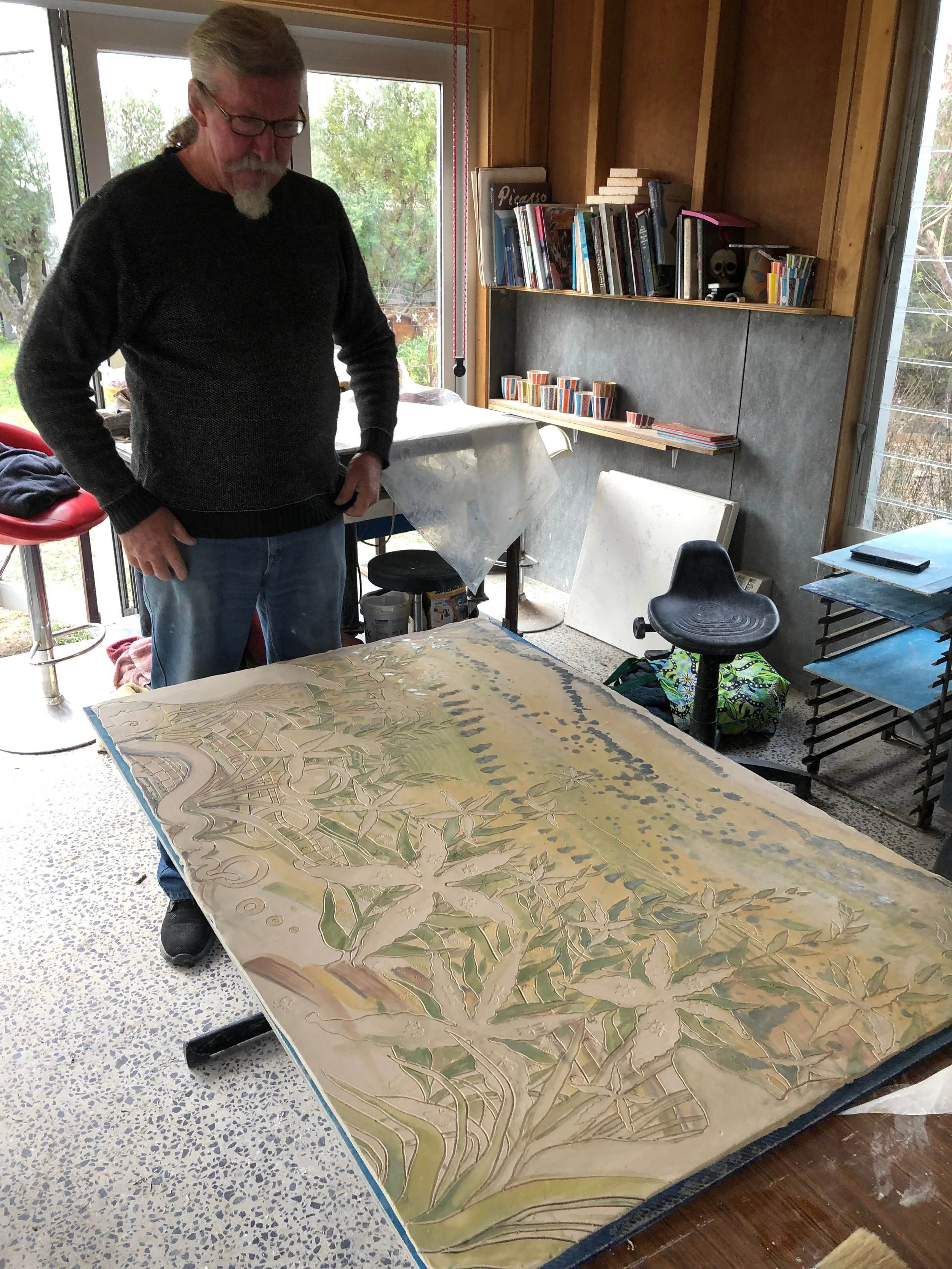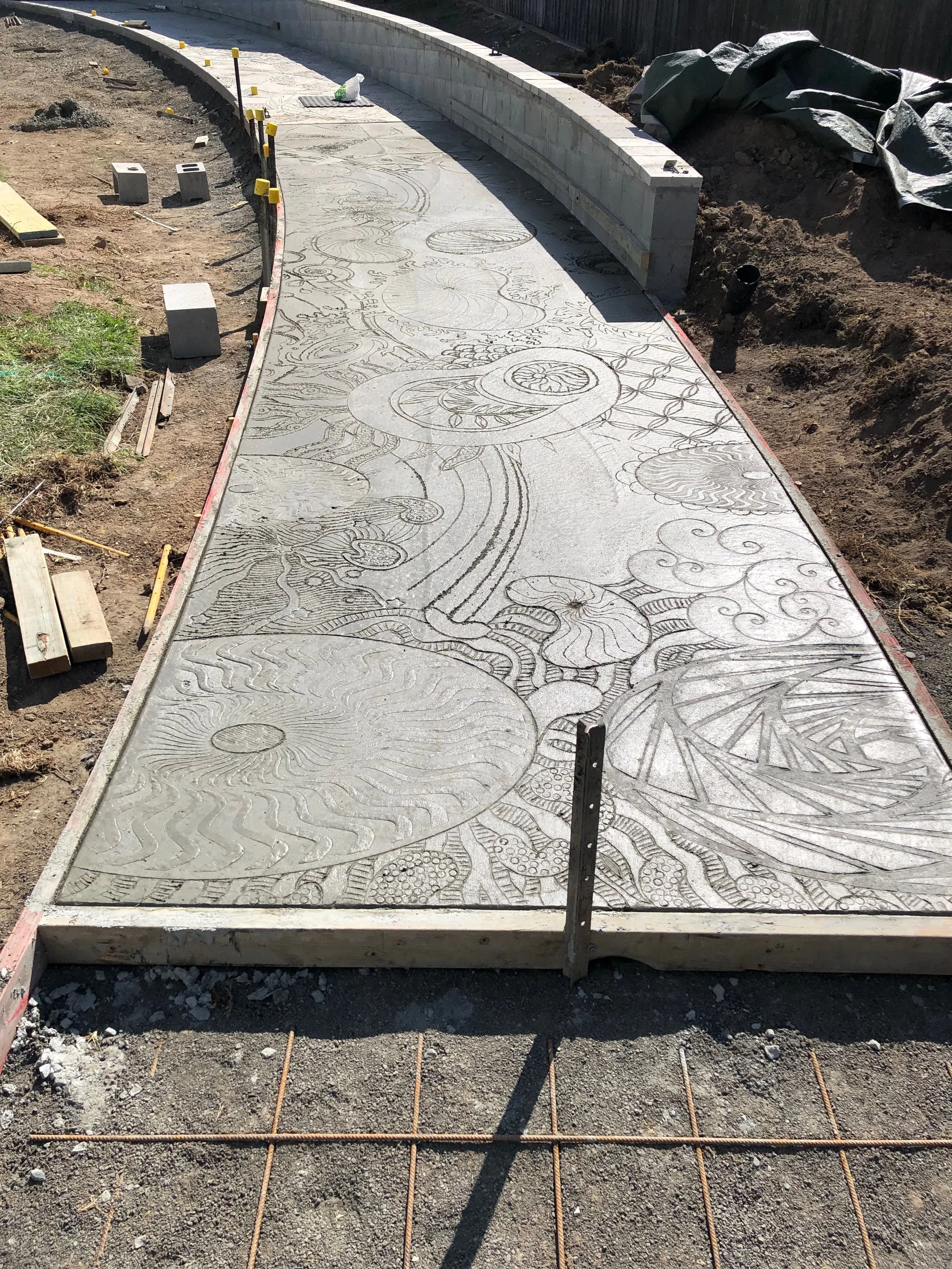Concrete stencilling and mosaic collaboration with Guy Crosley - Uralla NSW