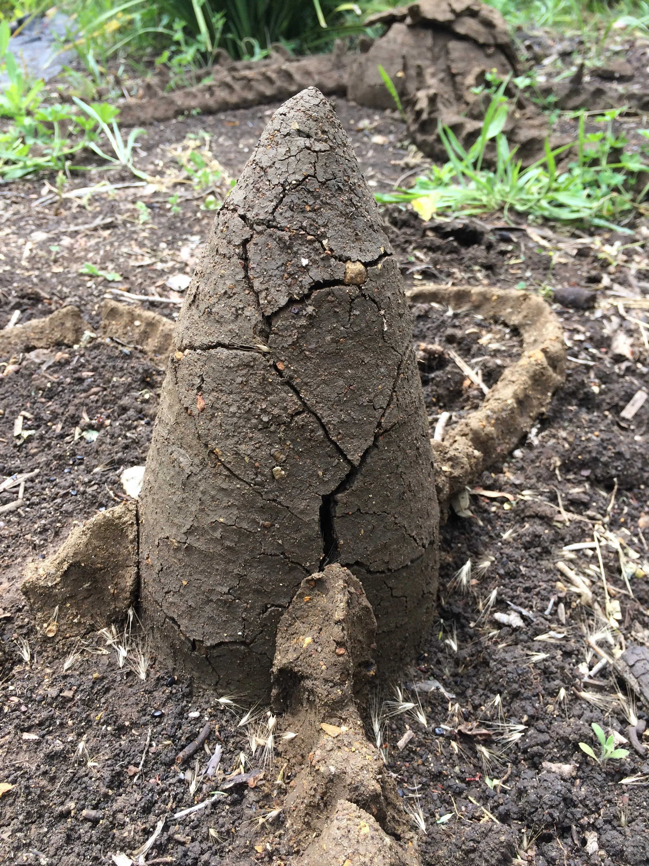 My work for Ephemera was a made in residence at the New England Art Museum (NERAM), Armidale NSW. The studio opened onto Black Gully, the site of recent extensive environmental restoration. My project utilised clay dug from the gully 30 meters from the studio. The clay was processed by hand to remove the larger rocks and sticks, then mixed with native plant seed collected by local botanists from in and around Black Gully. The work was made and placed in its raw form back on the banks of Black Gully. Within a few days the rains came and began to break the clay back down into the soil along with the seeds. Later in the summer the first signs of germination appeared. Only wattle species germinated. Now in 2025 some of these specimens are over 4 meters high.