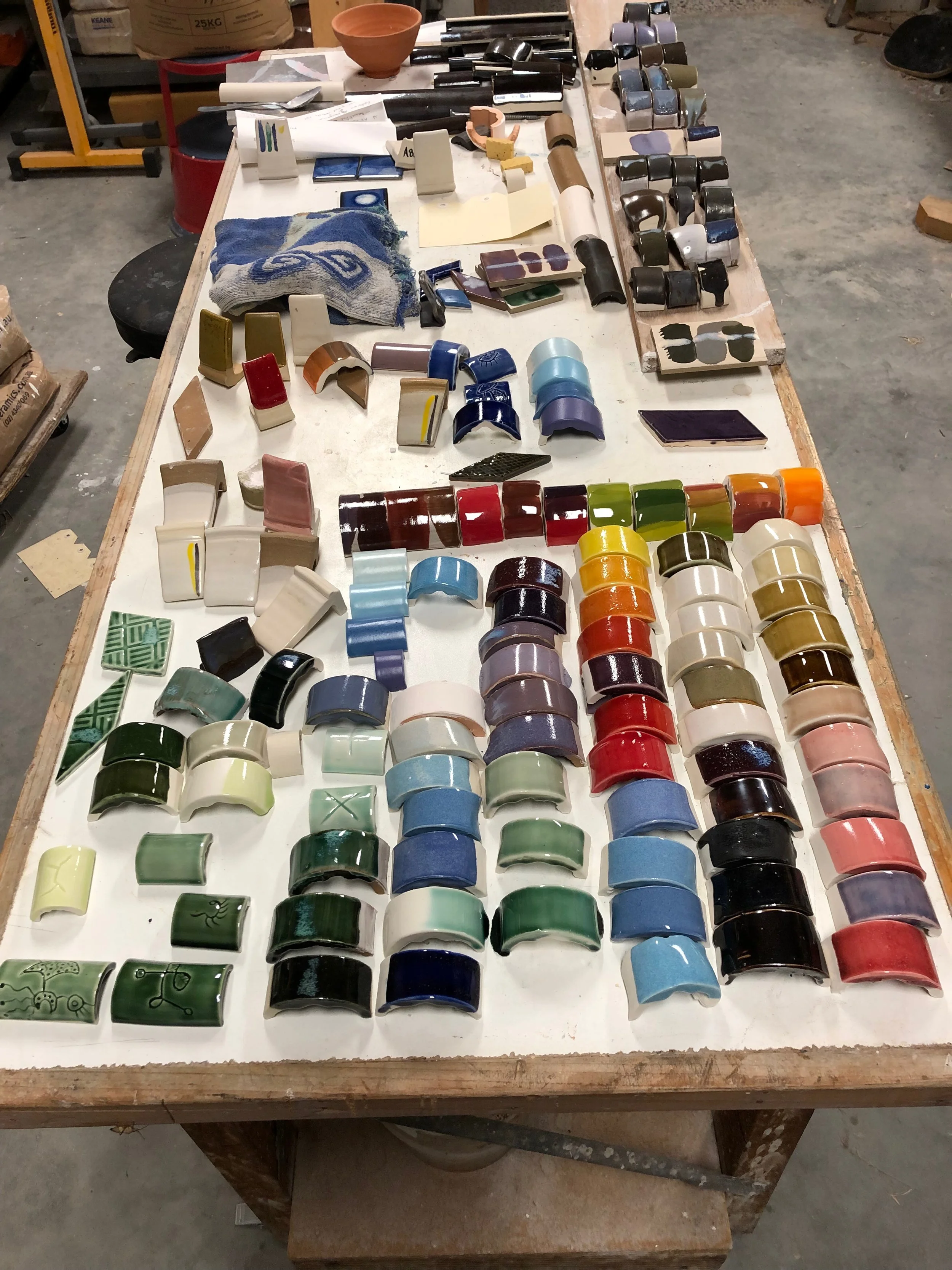 Glaze tests laid out for analysis