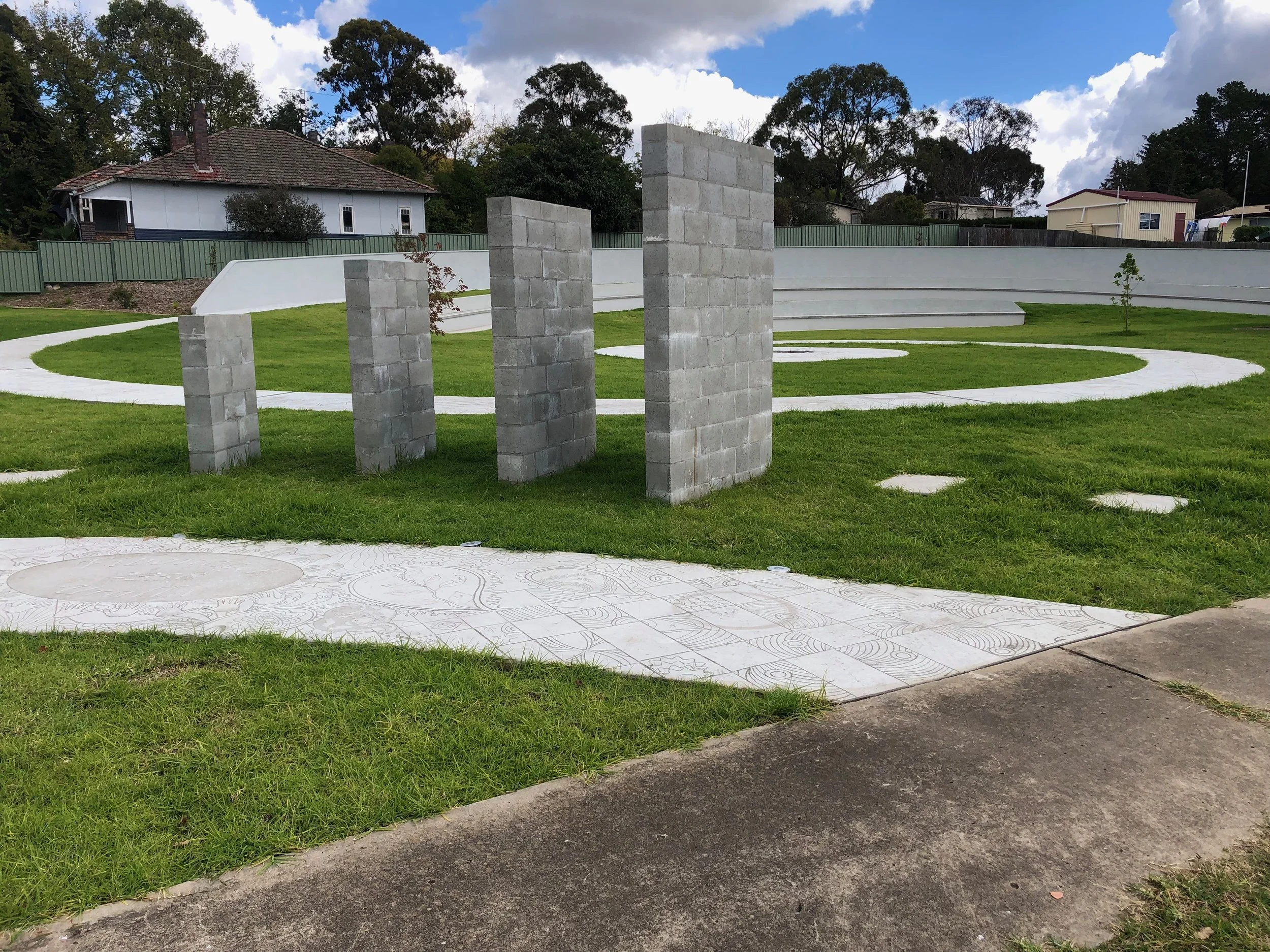 I have been working in collaboration with park concept designer and mosaic artist Guy Crosley from the Mid North Coast to bring the creative elements of the park to life. We started in October 2023 laying the 100m concrete path, completing the path in February 2024.
